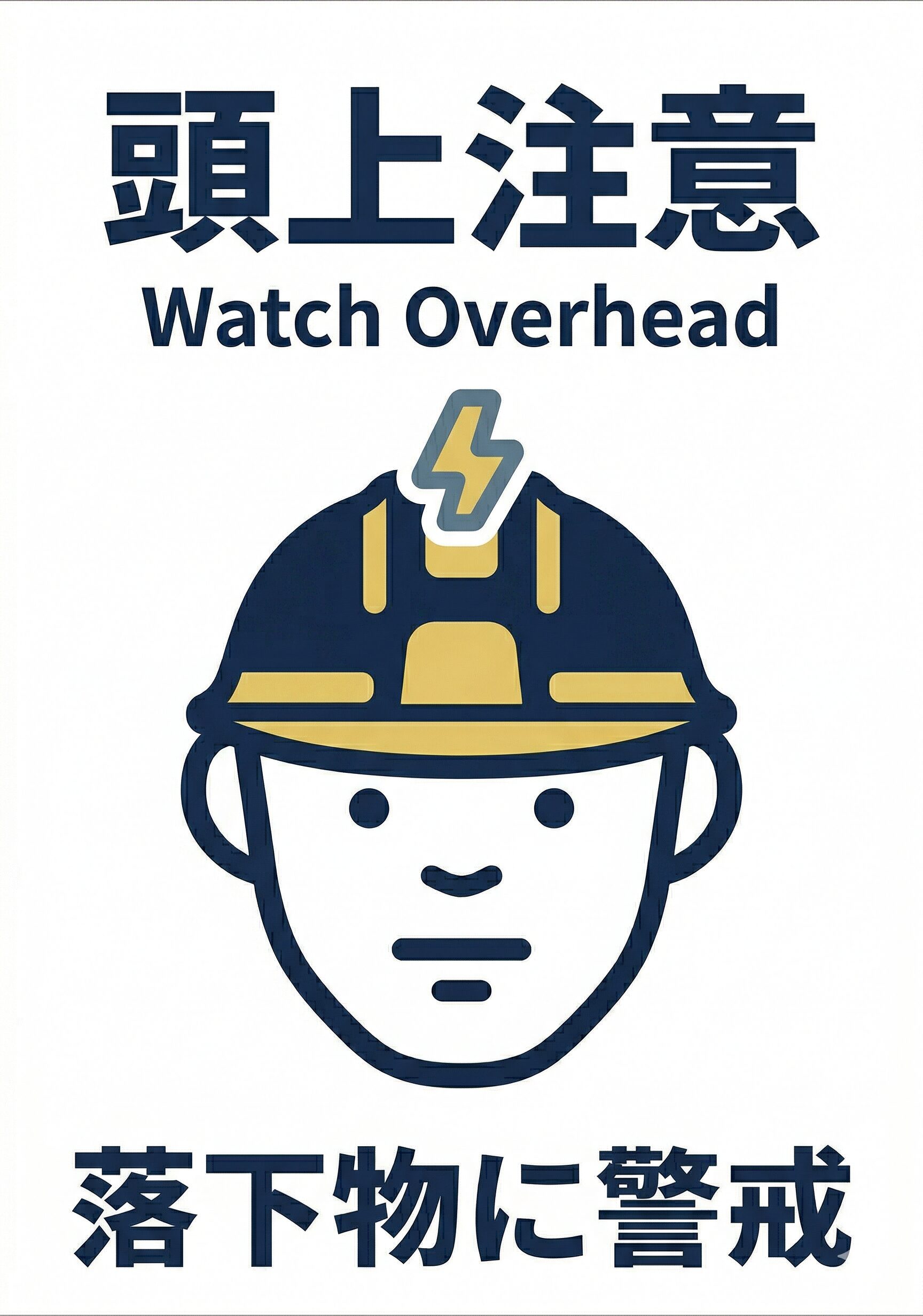 余計な情報を削っているため、歩行中でも内容をつかみやすいのが特長です。落下物への警戒を日常的に促し、上下作業が重なる現場の安全意識を保ちたいときに役立ちます。