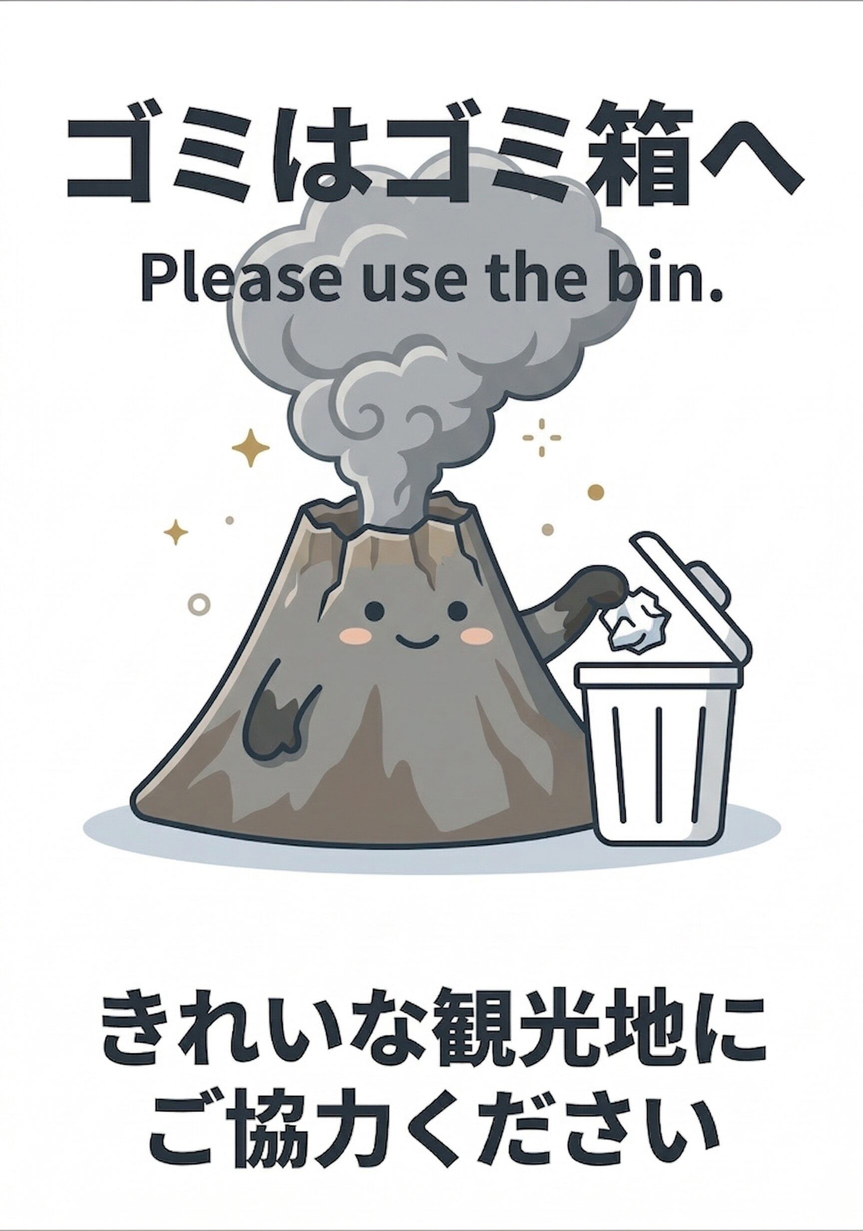 この張り紙は、鹿児島県をイメージする「桜島」の要素を取り入れた観光地向けA4デザインです。地域らしさを感じられる見た目に整えつつ、観光案内所、売店、宿泊施設、休憩スペース、商業施設の共用部など、不特定多数の来訪者が行き交う場所でも使いやすいように、主見出しの読みやすさと全体の視認性を重視しています。 無機質な案内表示になりすぎないよう、鹿児島県らしいモチーフを取り入れることで、景観になじみながらも内容が自然に目に入りやすい構成を目指しました。観光マナーのお願い、施設内ルールの周知、軽い注意喚起、誘導サインの補助など、強すぎる表現を避けたい場面にも使いやすいのが特徴です。掲示物を複数並べる場合でも、統一感を保ちながらテーマ差分を出しやすいシリーズ設計を意識しています。 実際に使用する際は、掲示したい内容、設置高さ、施設運用のルールに合わせて文言や配置を調整してください。鹿児島県の雰囲気を活かしながら、来訪者にわかりやすく伝わる掲示づくりをしたい場合に活用しやすいデザインです。