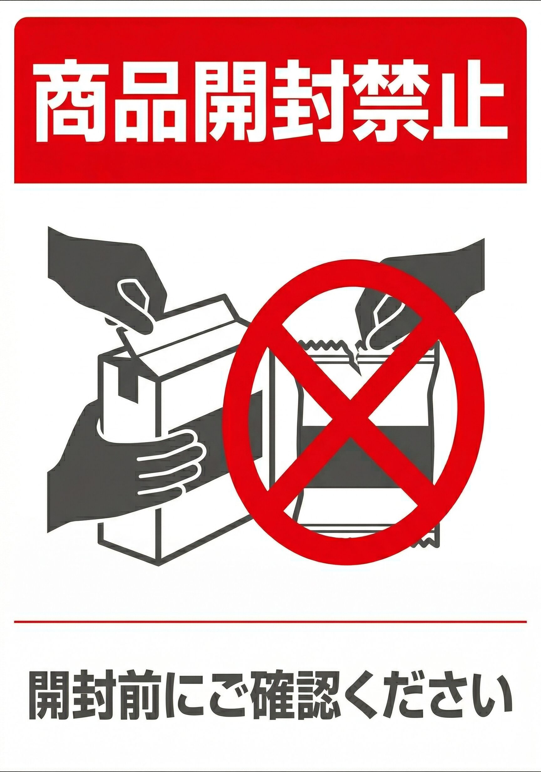 注意 | セキュリティ | 工場・作業場 | 店舗 | 禁止 商品開封禁止 Byharigami 2026年3月22日2026年4月3日 この「商品開封禁止」の張り紙は、商品や資材を許可なく開封しないよう注意を促したい場面で使いやすいA4掲示物です。保管棚まわり、出荷前エリア、検品スペース、在庫置き場などで掲示しやすい内容です。 開封ルールを明確にしておくことで、誤開封や在庫管理上のトラブルを防ぎやすくなります。短くわかりやすい表示なので、作業者にも来訪者にも意図が伝わりやすく、現場運用に取り入れやすい実用的な張り紙です。